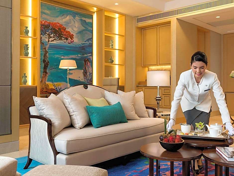 Offering views of the city, this corner suite has a separate living, dining and working areas. It also comes with a walk-in wardrobe, an private bathroom and an additional washroom for guests.